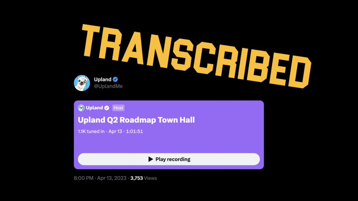 On April 13th, Upland held the Upland Town Hall. I loved that it had the Town Hall interactivity (the community getting to ask questions). I decided to make a transcript of it, to better understand what was being said (I personally like to read back parts that I missed, and that is easier for me in text than scroll back on audio all the time). Please leave a comment here or on Twitter if you liked it.